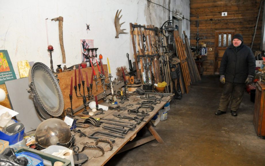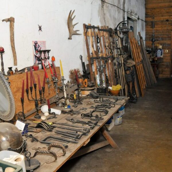 Darbnīcas apskate. Metālkalšanas iemaņu sniegšana. Izstrādājumu pārdošana un izgatavošana pēc pasūtījuma. Metālmākslinieciskā apstrāde. Meistars veido metāla darbus etnogrāfiskā latviešu stilā turpina vecās latviešu kalējmākslas tradīcijas. Apmeklētāji paši var izkalt naglu vai pakaviņu.