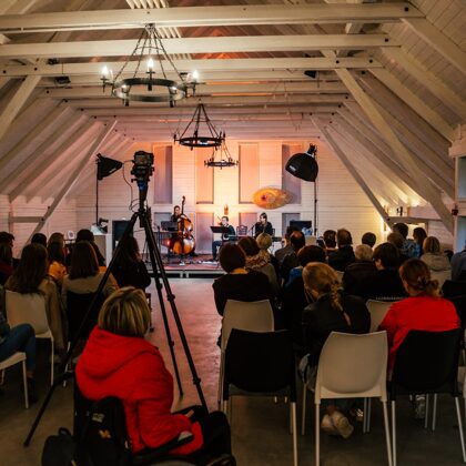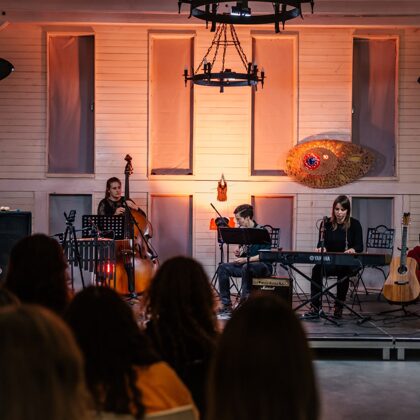 notikumā, kam tika dots tāds pats nosaukums kā izstādei – „Stikla gaismas melodijas“, skanēja elektriskā ģitāra Annas Sērumas, kontrabass Annijas