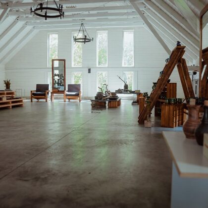 In den Sälen des Landguts werden verschiedene Ausstellungen–Gemälde, Posters, Fotoausstellungen, Keramik, Porzellan u.a. angeboten. Hier sind die Kunstwerke der latgalischen, lettischen sowie ausländischen Künstler ausgestellt. Die traditionelle Kunst wechselt mit der zeitgenössischen und digitalen Kunst. In der Regel sind mindestens zwei verschiedene Ausstellungen gleichzeitig im Landgut zu sehen. Die Dauerausstellung bieted das ganze Jahr über die latgalischen Keramikwerke, die man auch kaufen kann, an. Das Landgut ist für Künstlerwünsche Ausstellungen zu organisieren offen. Anmeldung und weiter Informationen [email protected].